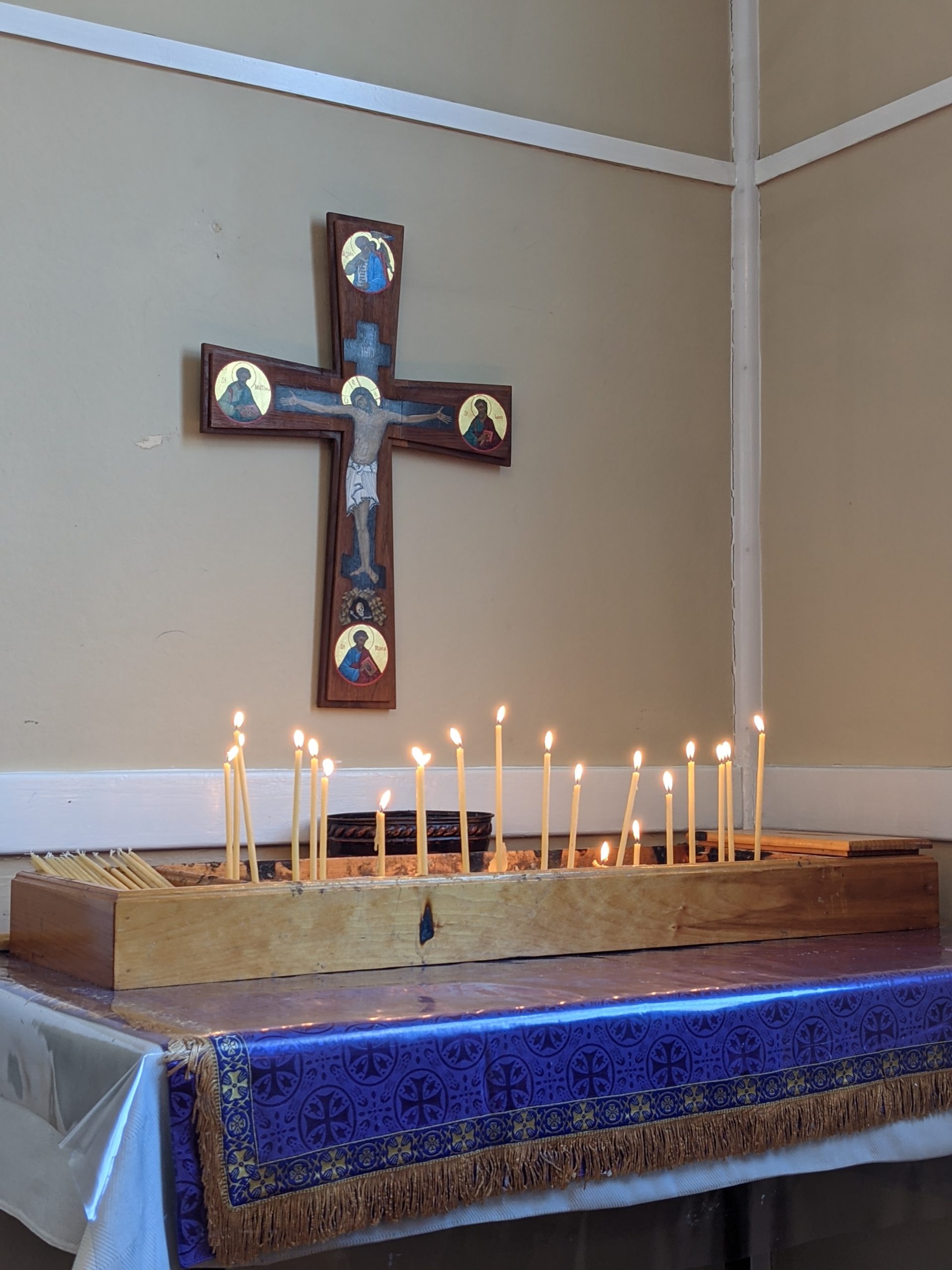 In a more particular and specific sense, the lighting of a candle in Church is an offering. The faithful purchase candles, thus making a monetary offering to the Church, and then they light those candles as an offering of prayer. Traditionally in Orthodox Churches candles are set in stands in significant parts of the Church, usually near a particular icon of Our Lord, His Mother, or a particular saint or group of saints. At this time we do not have candle stands near icons, but that might be a worthy goal. When we offer a candle by lighting it and placing it in a particular place in the Church we should simultaneously offer a prayer. For example, we may light a candle and place it to burn near an icon of a particular saint and, at the same time, ask that saint’s intercession before God on behalf of our self or a person for whom we wish to pray. We, also, may light and place candles as offerings of prayer on behalf of the departed. Additionally, candles may be lit not only as petitions asking for God’s blessings to be given, but as prayerful offerings of gratitude for blessings already received.